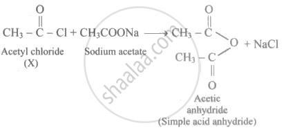 Because a mixed acid anhydride was produced as a result of the additional reaction of X (i.e., acetyl chloride) with the sodium salt of carboxylic acid. As a result, sodium acetate cannot be utilised as a salt. This is because the reaction would yield simple acid anhydride (viz., acetic anhydride) as follows: