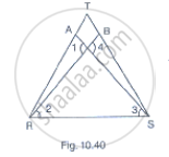 In Fig. 10.40, it is given that RT = TS, ∠1 = 2∠2 and ∠4 = 2∠3. Prove that ΔRBT ≅ ΔSAT.