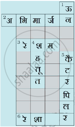 इस पाठ पर आधारित एक वर्ग पहेली दी गई है। रिक्त स्थानों की उन अक्षरों से भरने के लिए संकेतों का उपयोग करिए, जो अक्षर को पूरा करते हैं।