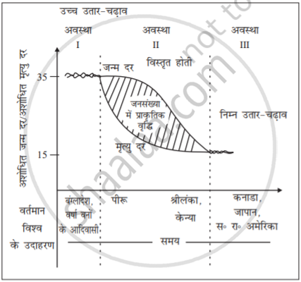जनांकिकीय संक्रमण की तीन अवस्थाओं की विवेचना कीजिए।