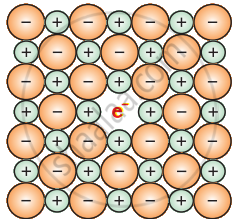 (ii) जब NaCl को सोडियम के वाष्प में गर्म किया जाता है तो Cl में से कुछ अपना जालक स्थान छोड़ देते हैं और ऋणायन रिक्तियाँ बना लेते हैं। यह क्लोराइड आयन सोडियम वाष्प के साथ मिलकर सोडियम क्लोराइड बनाना चाहता है। ऐसा करने के लिए सोडियम परमाणु इलेक्ट्रॉनों को खो देता है और Na+ आयन बनाता है। यह जारी किया गया इलेक्ट्रॉन F-केंद्र नामक आयन रिक्ति में फंसने के लिए क्रिस्टल में फैलता है।