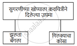 कवितेच्या आधारे सूचनेनुसार कृती करा: (1) आकृती पूर्ण करा: सुगरणीच्या खोप्याला कवयित्रीने दिलेल्या उपमा अरे खोप्यामधी खोपा सुगरणीचा चांगला देखा पिलासाठी तिनं - Marathi - Composite [[मराठी - संयुक्त (द्वितीय भाषा)]