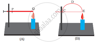 The length of wire PQ in case A is equal to the diameter of the semicircle formed by the wire CDE, in case B. One pin is attached to each wire with the help of wax as shown in the following figure. Which pin will fall first? Explain.