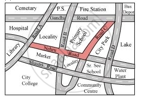 (b) Mark a green ‘X’ at the intersection of Road ‘C’ and Nehru Road, Green ‘Y’ at the intersection of Gandhi Road and Road A.