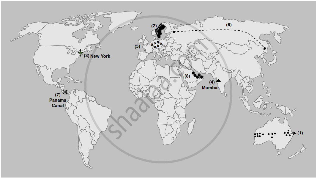 Mark and name the following on the outline map of the world with suitable index: