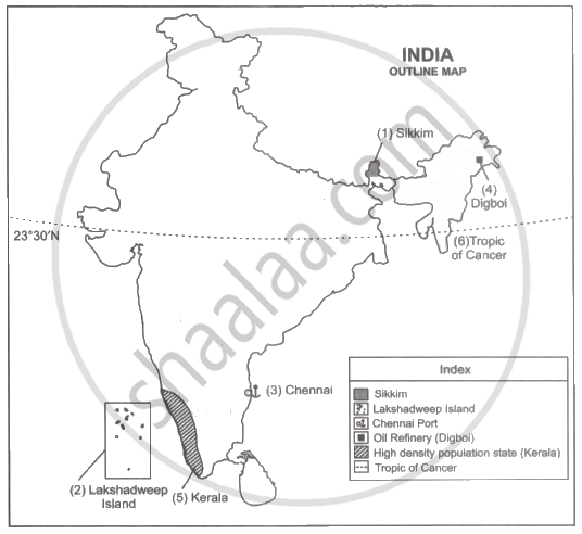 Mark the following in the outline map of India supplied to you. Write the names. Give Index