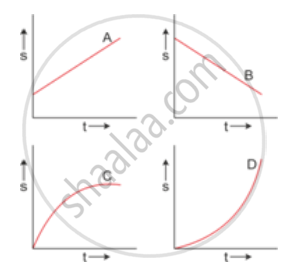 The figure shows the displacement - time graph for four bodies A, B C and D. In each case state what information do you get about the acceleration (zero, positive or negative).