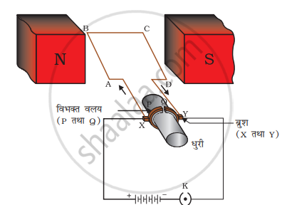 एक विद्युत जनरेटर (जैसा कि ऊपर की आकृति में दिखाया गया है) में एक स्थायी चुंबक के दो ध्रुवों के बीच एक घूर्णन आयताकार कुंडल ABCD होता है। इस कुंडली के दो सिरे दो वलयों R1 और R2 से जुड़े होते हैं। इन वलयों के भीतरी भाग को विद्युतरोधी बनाया जाता है। दो निश्चित ड्राइविंग ब्रश B1 और B2 को रिंग R1 और R2 के खिलाफ अलग से दबाया जाता है।