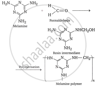 Melamine-formaldehyde resin is used for making unbreakable crockery. It is prepared by the copolymerisation of melamine (2, 4, 6-triamino-1, 3, 5-triazine) and formaldehyde as shown below.
