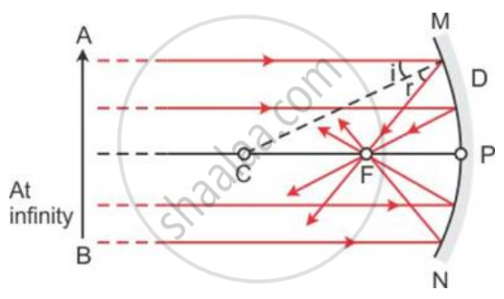 (ii) Concave mirror converges a beam of light falling on it.