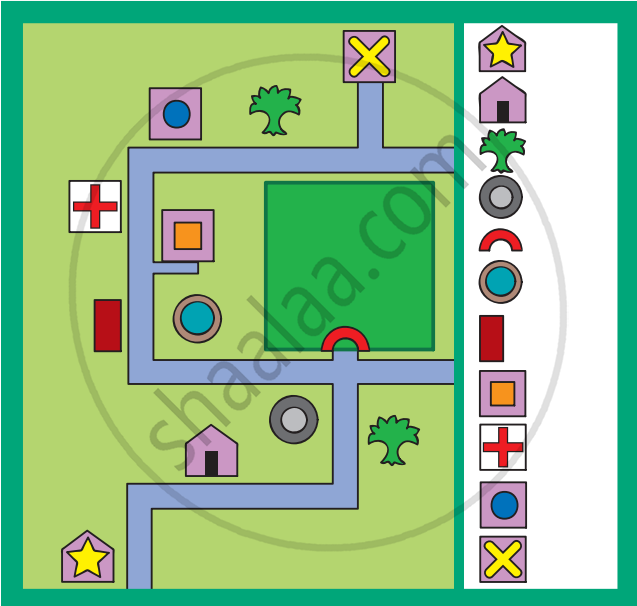 आपके घर से स्कूल के रास्तें में आने वाले स्थानों को चिन्हों के द्वारा दर्शाओ। आप अपनी पसंद के चिन्ह प्रयोग कर सकते हैं।