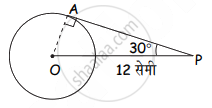 'O' केंद्र असलेल्या वर्तुळाला P या बाह्यबिंदूतून AP ही A बिंदूपाशी स्पर्शिका काढली आहे. जर OP = 12 सेमी व ∠OPA = 30°, तर वर्तुळाची त्रिज्या 6 सेमी असेल.