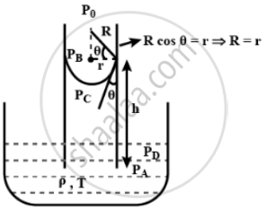 `"2T"/"R" = rho"gh" => "h" = "2T"/("R"rho"g") = ("2T" "cos" theta)/(rho"gr")`