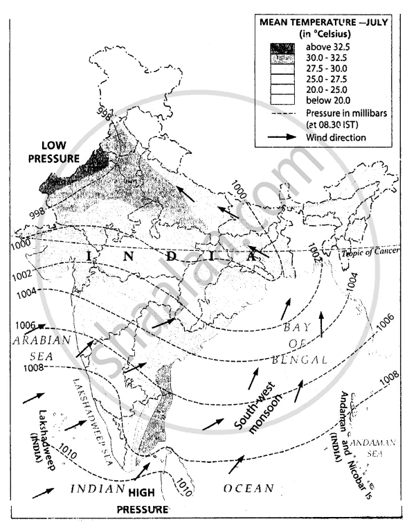 Mark with red arrows the paths of the Arabian Sea branch and the Bay of Bengal branch of the south-west monsoon.