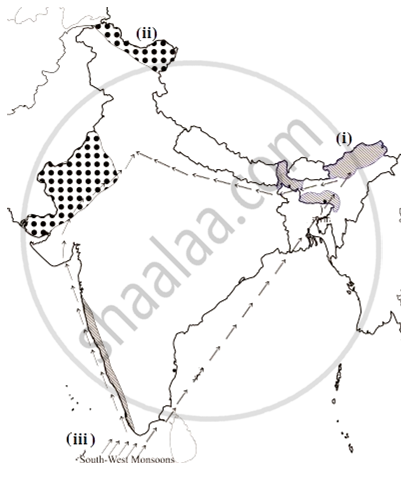 On an outline map of India, show the following.