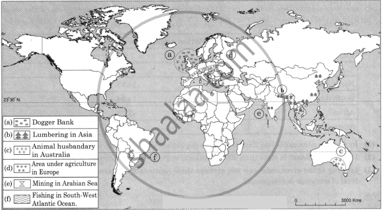 On an outline map of the world, show the following with appropriate symbols and prepare an index: