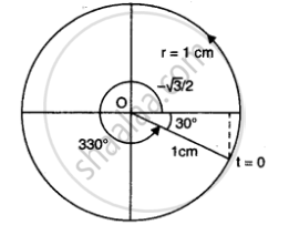 At `"t" = 0, x = cos pi/6 = sqrt3/2cm`