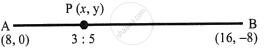 `x = (3 xx 16 + 5 xx 8)/(3 + 5)`, `y = (3 xx (-8) + 5 xx 0)/(3 + 5)`
