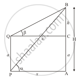 Let AB be the tower of height H and PQ is a given post of height a, α and β are angles of elevation of the top of tower AB from P and Q. Let PA = x. PQ = a and BC = h.