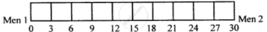 Draw a linear scale to show two men standing 30 m apart. Use the scale 1 cm = 3m.