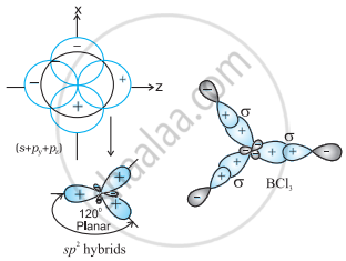 In \[\ce{BCl3}\], the geometry is trigonal planar is due to sp2 hybridisation.