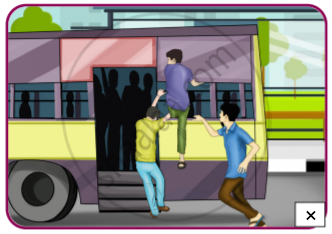 Standing on the foot board and hanging on the bus is dangerous. |