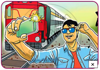 Taking self! in front of a running train is dangerous. |