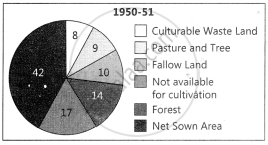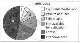 Represent the following data with help of pie-diagram. India: Land use 1951-2001 1950-51 1998-2001 Net Sown Area 42 46 Forest 14 22 Not available - Geography