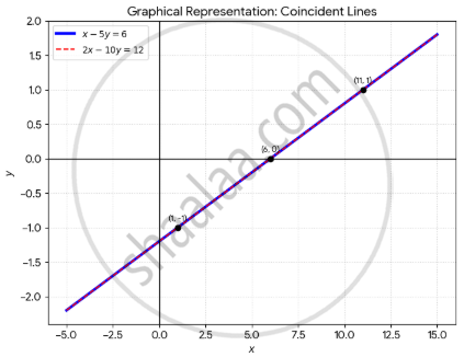 Represent the following pair of linear equations graphically and hence comment on the condition of consistency of this pair: x – 5y = 6; 2x – 10y = 12 - Mathematics