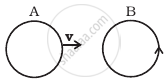 There are two coils A and B as shown in figure. A current starts flowing in B as shown, when A is moved towards B and stops when A stops moving. The current in A is counterclockwise. B is kept stationary when A moves. We can infer that ______.