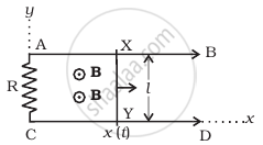 A conducting wire XY of mass m and neglibile resistance slides smoothly on two parallel conducting wires as shown in figure. The closed circuit has a resistance R due to AC. AB and CD are perfect conductors. There is a ˆ. magnetic field `B = B(t)hatk`.