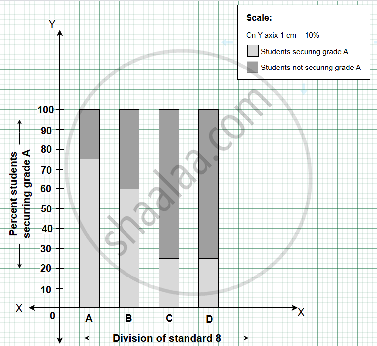 | Percentage of students securring grade A | `45/60 xx 100 = 75` | `33/55 xx 100 = 60` | `10/40 xx 100 = 25` | `15/75 xx 100 = 20` |