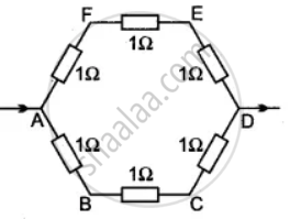 Six equal resistors of 1 ohm each are connected to form the sides of a hexagon ABCDEF. Calculate the resistance offered by the combination if the current enters at A and leaves it at D.