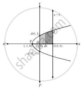 \[ \Rightarrow\text{ A = Area OABCO }= \int_0^4 \left| y \right| dx\]