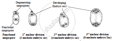 Sketch and label stages in development of angiospermic female gametophyte from functional megaspore.