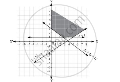 Solve the following system of inequalities graphically: x – 2y ≤ 3, 3x + 4y ≥ 12, x ≥ 0, y ≥ 1