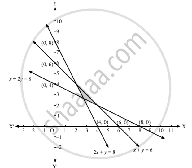Now, we see that the origin (0, 0) does not satisfy the inequation x + 2y\[\geq\] 8