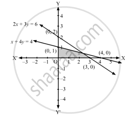 2x + 3y ≤ 6, x + 4y ≤ 4, x ≥ 0, y ≥ 0