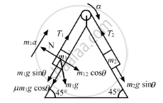 \[ T_1 - \left( m_1 g\sin\theta + \mu m_1 g\cos \theta \right) = m_1 a ............(2)\]