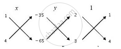 `∴ x/((1×(−65) −4 ×(−35)]) = Y/([(−35) × 3 −(−65) × 2]) = 1/([2 × 4−3 × 1])`