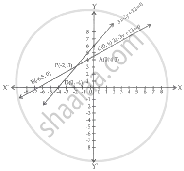 2x – 3y + 13 = 0; 3x – 2y + 12 = 0