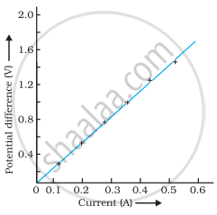 The graph between potential difference and the current is observed to be a straight line passing through origin. The slope of V-I graph indicates the resistance of the circuit. This verifies Ohm's law.S. No. Number of cells used in the circuit Current through the nichrome wire, I (ampere) Potential difference across the nichrome wire, V (volt) V/I