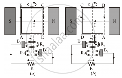 • Slip Rings − The ends of coil ABCD are connected to two hollow metallic rings R1 and R2.