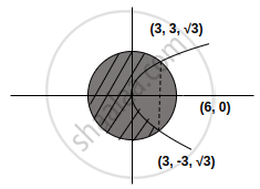Required area = `πr^2 - 2[int_0^3 sqrt(9x)dx + int_3^6sqrt(36 - x^2)dx]`