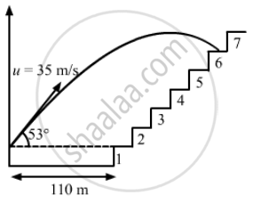 The benches of a gallery in a cricket stadium are 1 m wide and 1 m high. A batsman strikes the ball at a level one metre above the ground and hits a mammoth sixer. The ball starts at 35 m/s at an angle of 53° with the horizontal. The benches are perpendicular to the plane of motion and the first bench is 110 m from the batsman. On which bench will the ball hit?