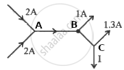 At junction C, I = IBC - 1.3 = 3 - 1.3 = 1.7 A