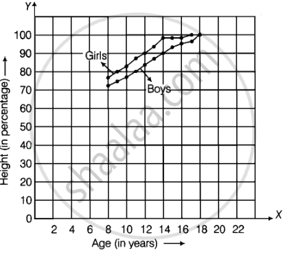 The following chart gives the growth in height in terms of percentage of full height of boys and girls with their respective ages.