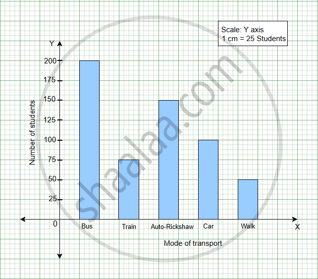 The following table shows the mode of transport used by students of a school. Taking a suitable scale, draw a bar graph.