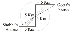 Distance between two house = `sqrt((10)^2 + (10)^2) = 10 sqrt2` = 14.14 km