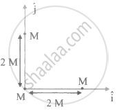 Three identical spheres, each of mass M, are placed at the comers of a right angle triangle with mutually perpendicular sides equal to 2 m (see figure). Taking the point of intersection of the two mutually perpendicular sides as the origin, find the position vector of centre of mass.